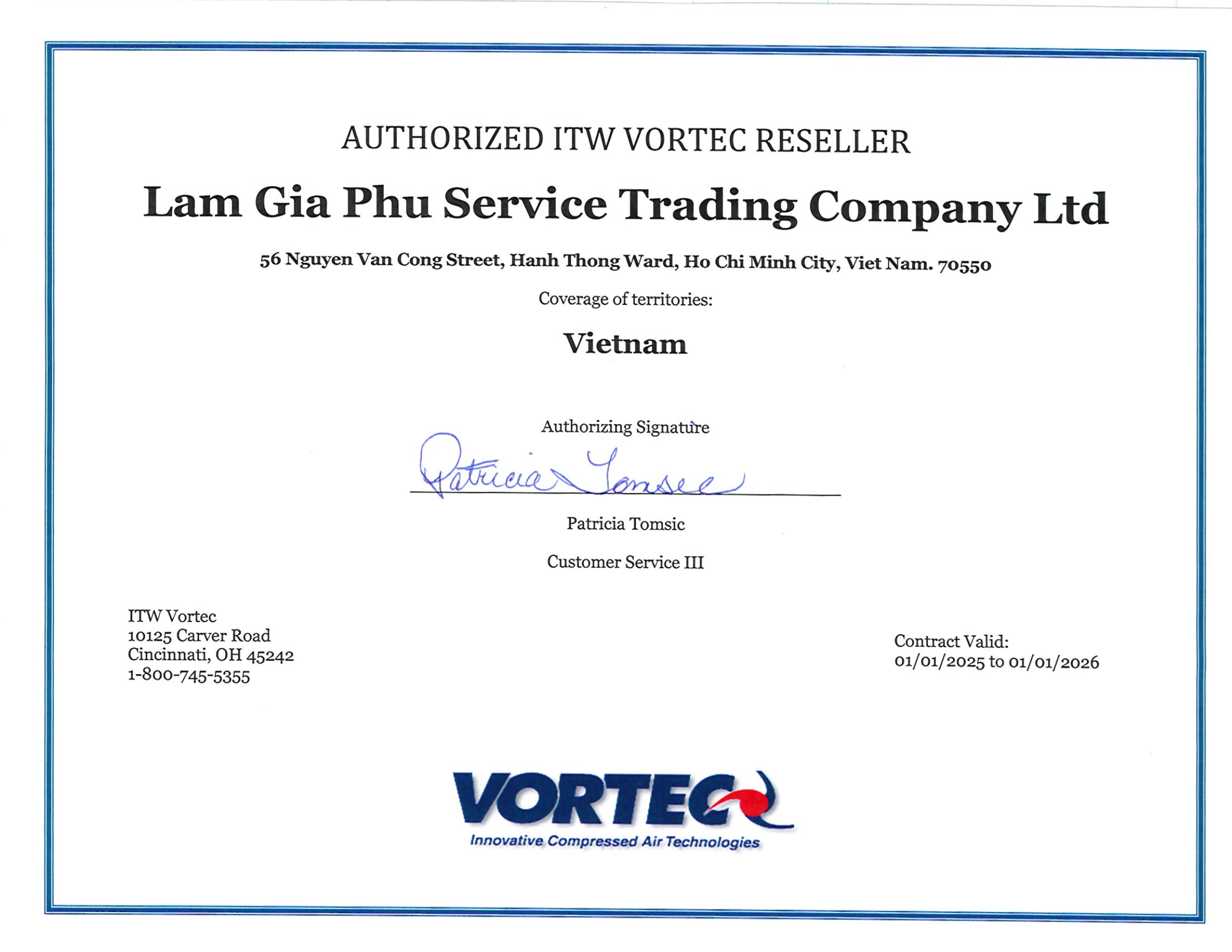 CÔNG TY TNHH TM DV LÂM GIA PHÚ là Đại lý VORTEC USA, chuyên cung cấp các thiết bị công nghiệp dùng khí nén như: