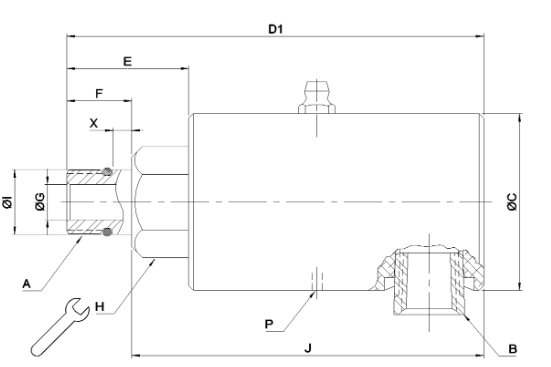 | KÍCH THƯỚC: A: M16x1.5 LH B: 1/4″ NPT C: 44 mm D1: 103 mm E: 30 mm F: 16 mm G: 9 mm H: 24 mm I: 16.026 mm J: 74 mm P: Non-Threaded X: 4 mm | ![]() |
