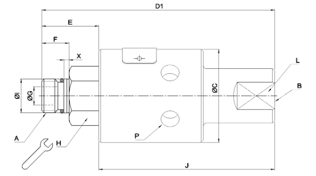 DimensionsA: M16x1.5 LH B: G 3/8″-19 C: 43.64 mm D1: 112 mm E: 30 mm F : 16 mm G: 9 mm H: 24 mm I: 17.993 mm J: 96 mm L: 22 mm P: Non-Threaded X: 5 mm | ![]() |